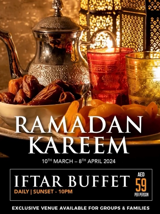 Enjoy Ramadan with a delightful Iftar buffet from traditional favorites to modern delights. Groups can benefit from a discounted price. More info here.