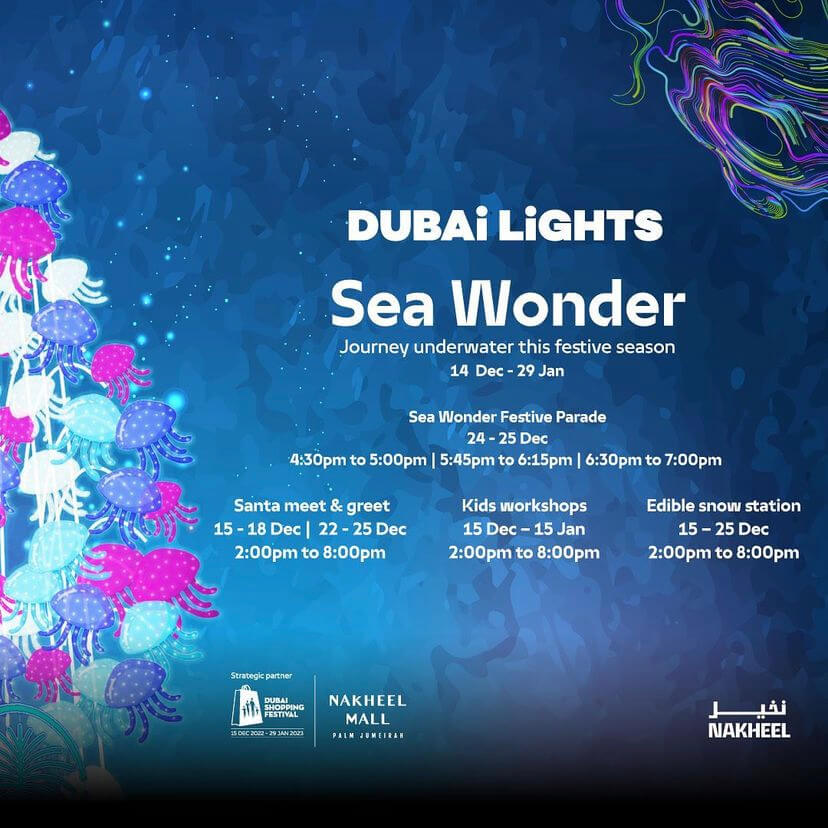 Journey underwater this festive season at Nakheel Mall. There will be plenty of events such as, Festive Parade, Santa meet and greet, kids workshop and edible snow station awaits you. More info here.